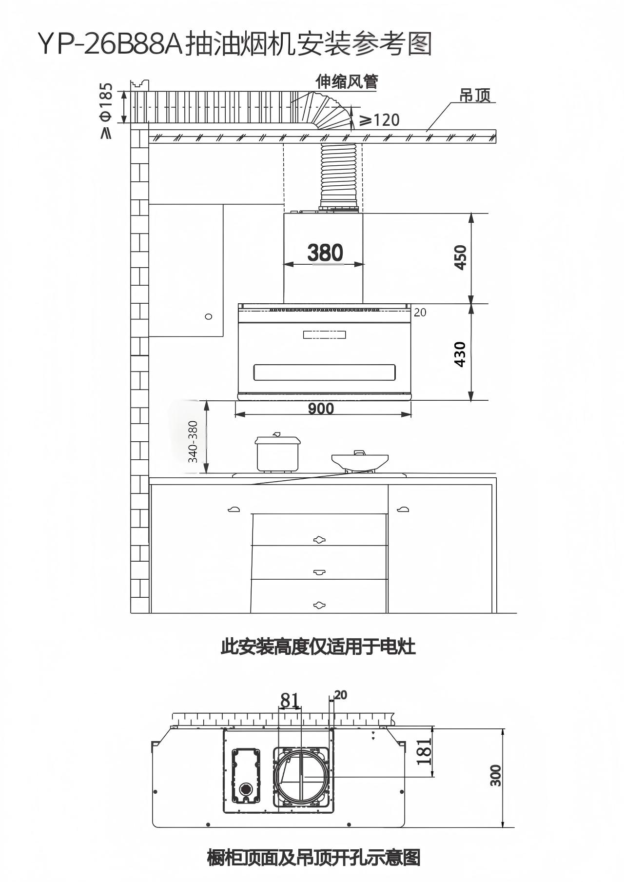 7、Φ185mm阻燃出风口;8、静音加厚铝箔排烟管;9、最大静压1080Pa;